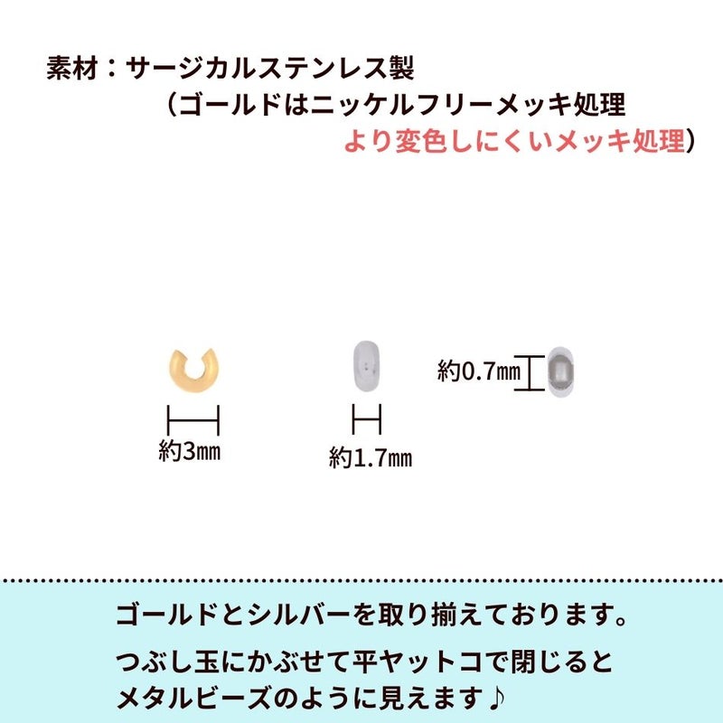 つぶし玉にかぶせて平ヤットコで閉じるとメタルビーズのように見えます♪