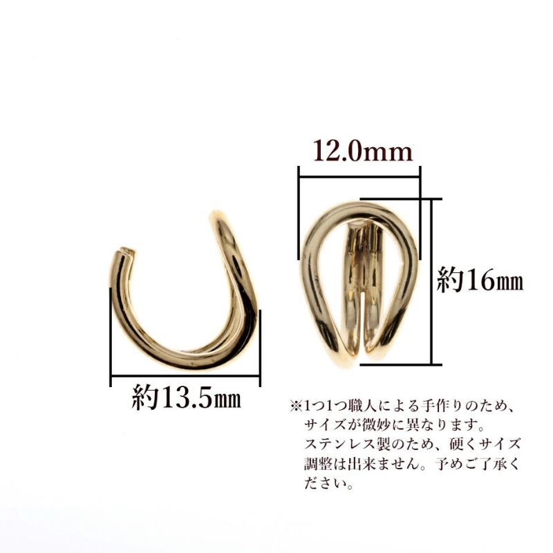 約16×12×13.5mm、線径1.9mm ※1つ1つ職人による手作りのため、サイズが微妙に異なります。ステンレス製のため、硬くサイズ調整は出来ません。 予めご了承ください。 |