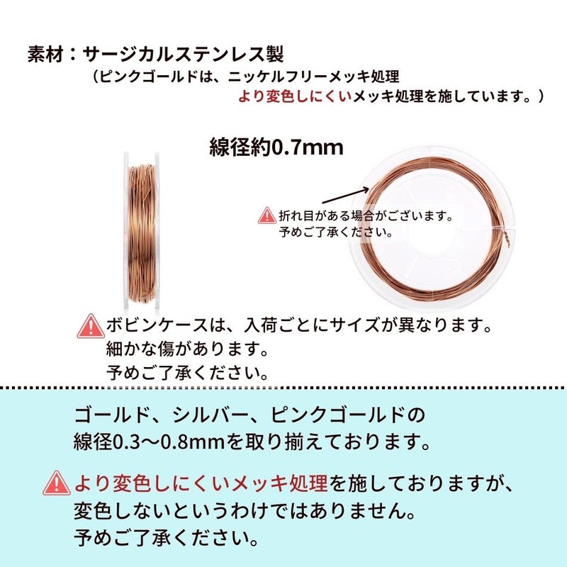 [約5m] アーティスティックワイヤー [ 21G ] 0.7mm [ ★ピンクゴールド] サージカルステンレス ワイヤーワーク ワイヤーアート パーツ 金属アレルギー対応 M2-05