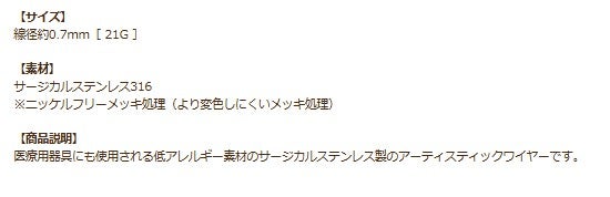 医療用器具にも使用される低アレルギー素材のサージカルステンレス製のアーティスティックワイヤーです。
