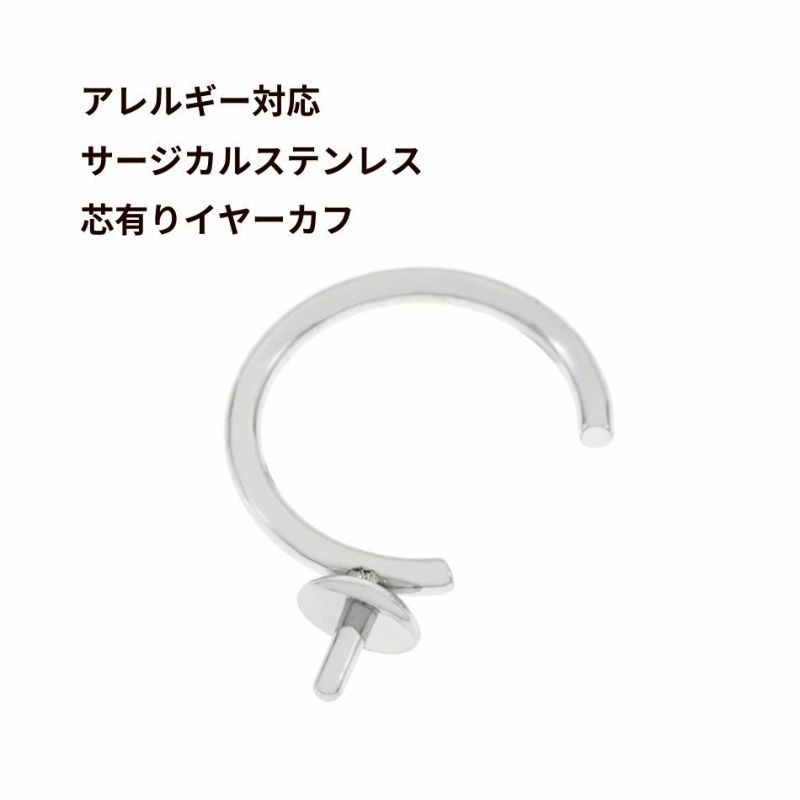 *芯有り* イヤーカフ [ 銀 シルバー ] サージカルステンレス 芯立て ビーズ フリーサイズ 素材 パーツ 金属アレルギー対応 E1-03
