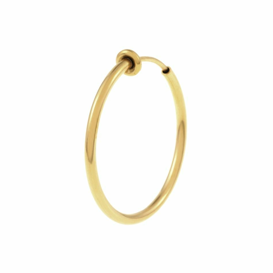 フープイヤリングはピアスに見えるイヤリングとして人気で輪っか部分が小さめから大き目タイプまであります。太目タイプはピアスの穴を開けなくてもよいのでメンズにも人気です。