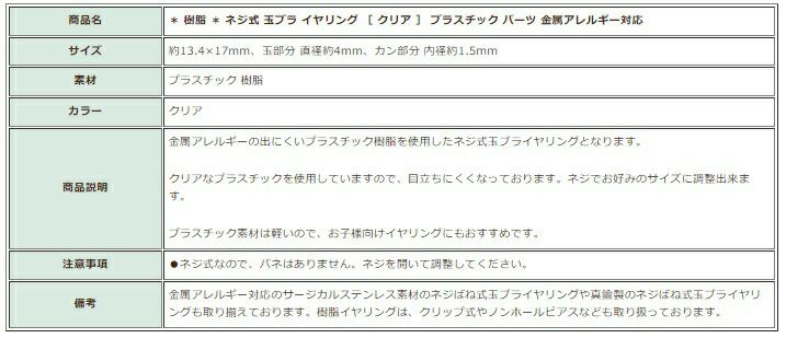 他の画像を見る 金アレ 樹脂 プラスチック クリア パーツ イヤリング 素材 金具 [10個]* 樹脂 * ネジ式 玉ブラ イヤリング [ クリア ] プラスチック E1-06 パーツ 金属アレルギー対応 当店特別価格 ¥ 639 税込 在庫切れ 再入荷お知らせ お気に入りに登録する