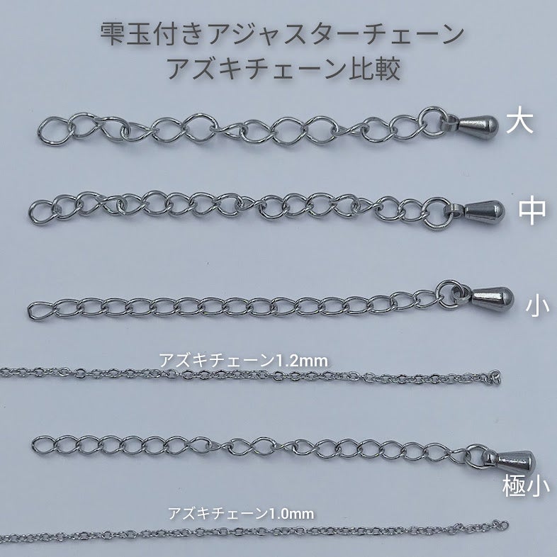 他の画像を見る 金アレ 素材 お手入れ簡単 316 銀色 単品 ニッケルフリー [10個]雫付き アジャスターチェーン 大 【 単品 】[ 銀 シルバー ] サージカルステンレス つゆ玉付き パーツ 金属アレルギー対応 M1-01 当店特別価格 ¥ 340 税込 カートに入れる お気に入りに登録する