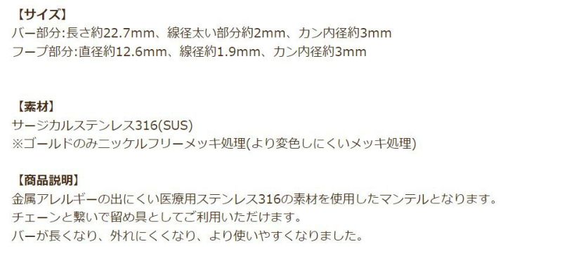 金属アレルギー マンテル 素材 留め具 316 金色 素材 金具