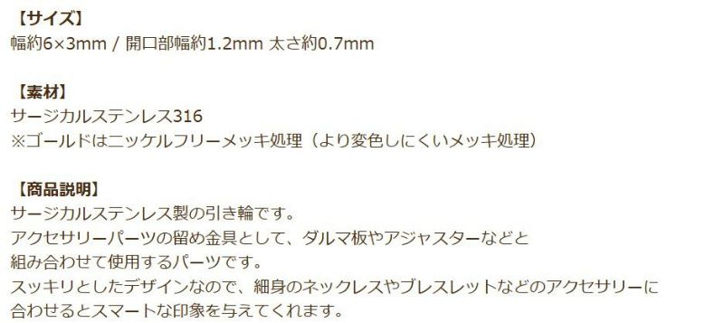 金アレ 316 素材 材料 ニッケルフリー 敏感肌 留め具 エンドパーツ