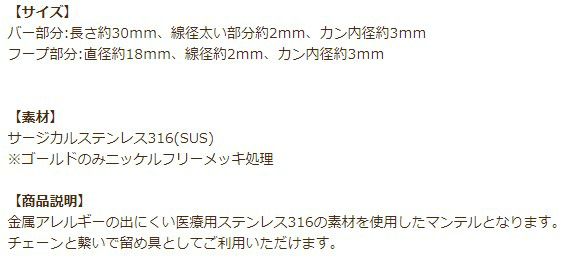 金属アレルギー マンテル 素材 留め具 316 銀色 素材 金具