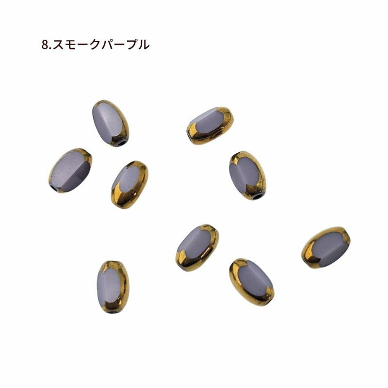 [ 10個 ] ライス ガラスビーズ 変形オーバル ゴールドエッジ 7×4.5mm 選べるカラー 8色 スモーク スカイ ブルー ティー グリーン クリア ペールパープル レッド グリーン スモークパープル 素材 アクセサリーパーツ O-05