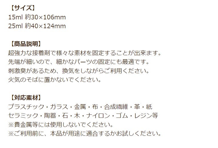 超強力な接着剤で様々な素材を固定することが出来ます。