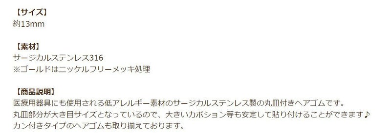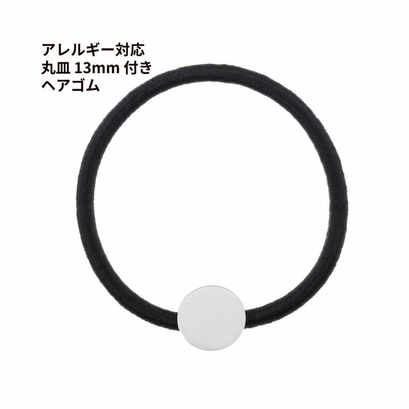 医療用器具にも使用される低アレルギー素材のサージカルステンレス製の丸皿付きヘアゴムです。