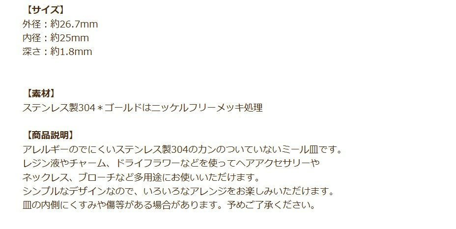 丸皿も3ミリから5ミリサイズがあるのでハンドメイド作家さんの作品にぴったりのものを選ぶことができます。