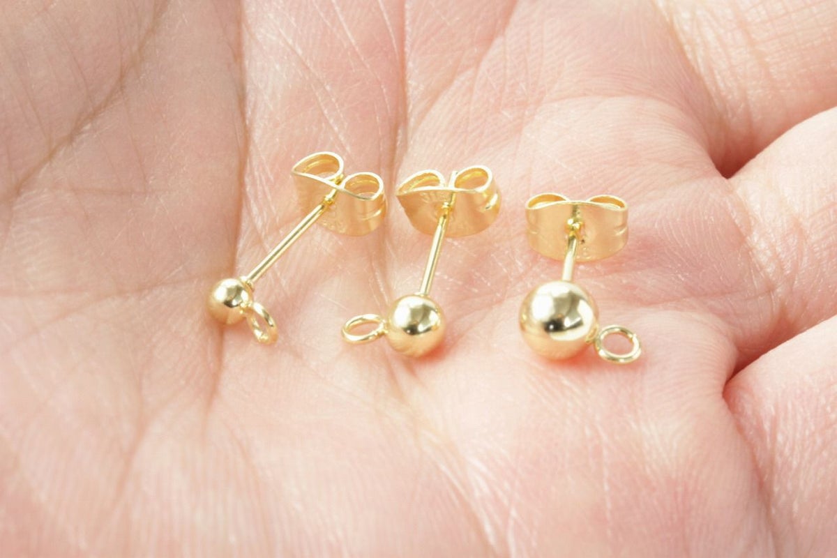 カンが付いたボールピアスポストは3ミリサイズが定番人気です。カンの向きが横向きと縦向きがある為
