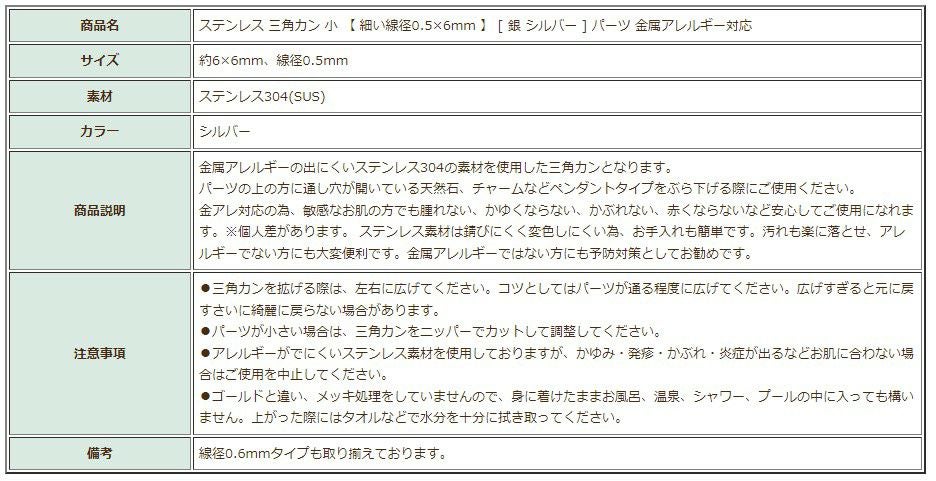 三角カンはドロップやスクエアのビーズなど丸カンやCカンでつながらない大きなパーツをつなげる時に使います。
