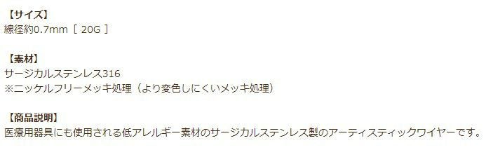 医療用器具にも使用される低アレルギー素材のサージカルステンレス製のアーティスティックワイヤーです。