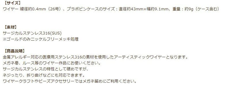 ワイヤー 線径約0.4mm(26号)、プラボビンケースのサイズ:直径約43mm×幅約9.1mm、重量:約9g(ケース含む)