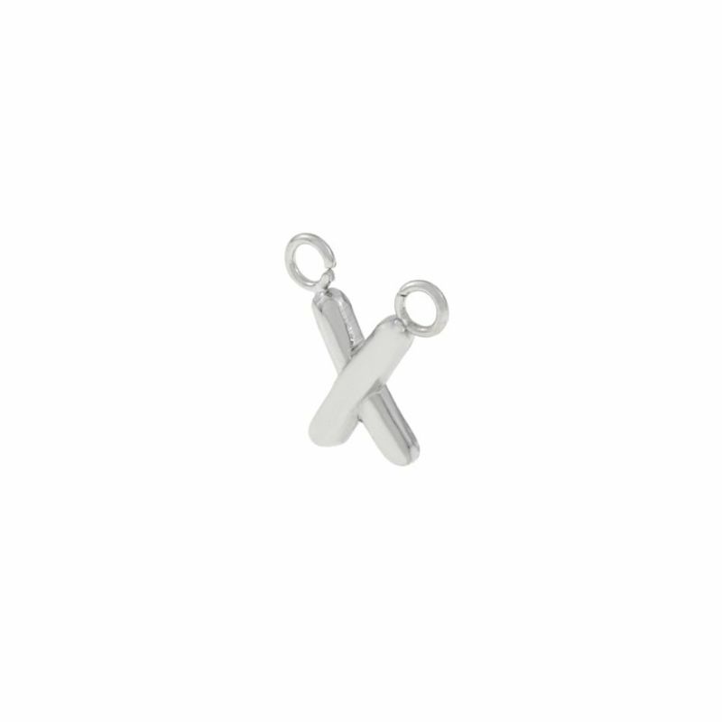 [ 5個 ] * 2つカン * X ミニチャーム [ 銀 シルバー ] サージカルステンレス パーツ 金属アレルギー対応 クロス O-01