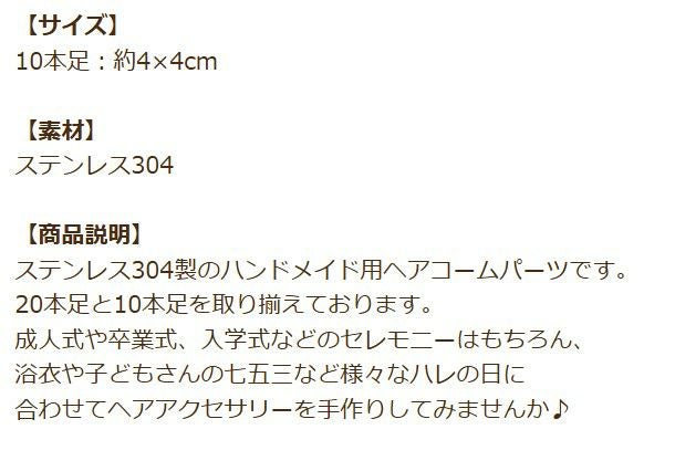 金アレ 304 材料 くし 櫛 成人式 卒業式 入学式 セレモニー ヘアドレス 髪飾り ハンドメイド用