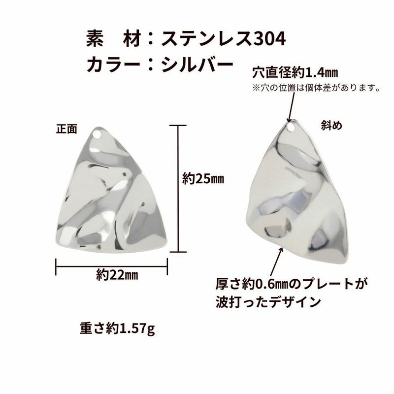 [4個] ステンレス ウェーブ 変形 プレート チャーム * 三角形 * [ 銀 シルバー ] サークル パーツ 金属アレルギー対応 O-03