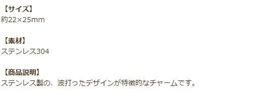 ステンレス製の、波打ったデザインが特徴的なチャームです。