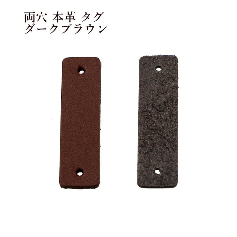 [10個] 両穴 レザー 本革 タグ [小] [ ダークブラウン 濃い茶 ] コネクト 接続 パーツ