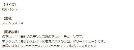 [1M×1本] アンカーチェーン * 6mm * [ 銀 シルバー ] マリーナチェーン 切り売り チェーンのみ ステンレス 304 パーツ 金属アレルギー対応 C2-02