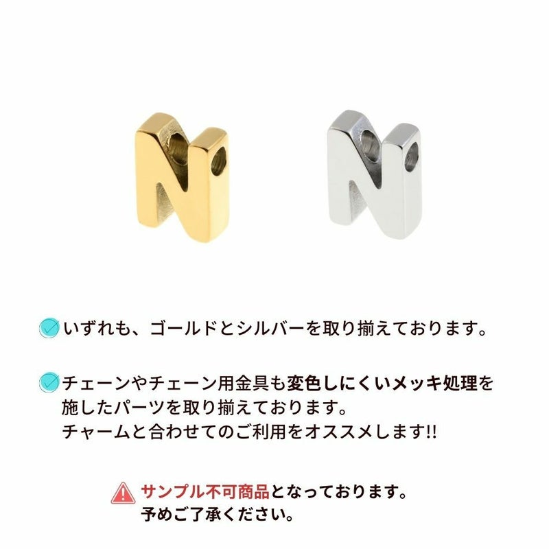 商品名 サージカル ステンレス [ シンプル ] アルファベット チャーム * N * [ 銀 シルバー ] O-A-001 パーツ 素材 金属アレルギー対応
