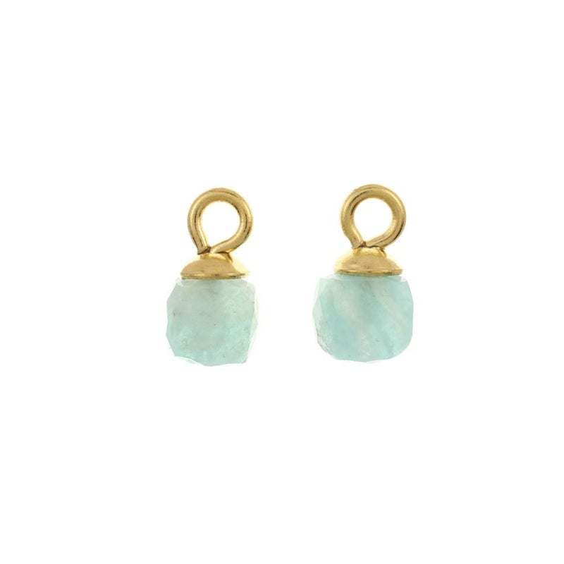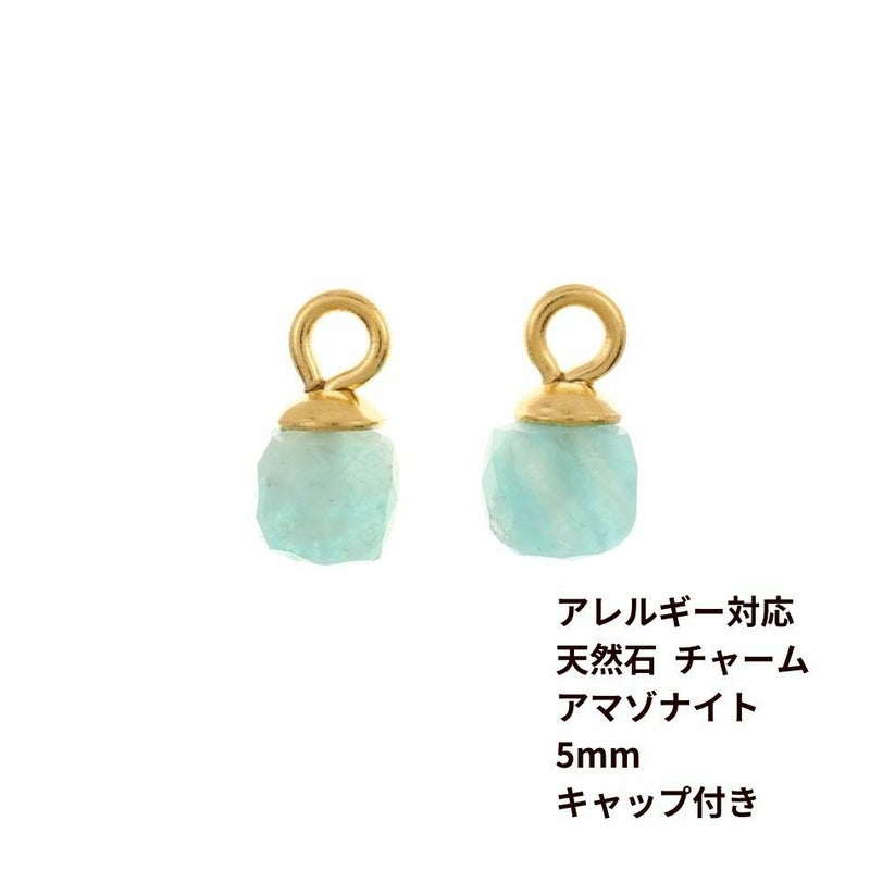 [2個] 天然石 チャーム 5mm [ アマゾナイト ] ステンレス キャップ付き ペンダントトップ O-05