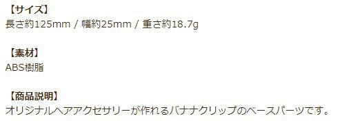 オリジナルヘアアクセサリーが作れるバナナクリップのベースパーツです。