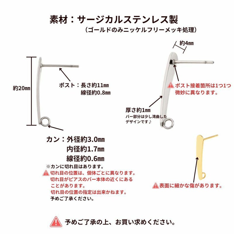 【 ポストのみ 】 バーピアス * 大 20mm * 棒 [ 銀 シルバー ] サージカルステンレス パーツ 金具 金属アレルギー 金アレ P3-05