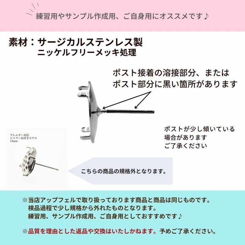 [4個] 【 ** 訳アリ ** 】 シャワー 台付き *ピアス* 13mm [ 銀 シルバー ] 【 ポストのみ 】 サージカルステンレス 金具 パーツ 金属アレルギー P3-04