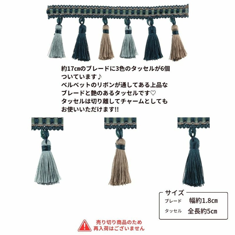 [6個] タッセル付き ブレード * 3色 * [ ベージュ × ダークグリーン × シルバーグリーン ] お買い求めやすくなりました 房飾り 光沢 パーツ 素材 O-05