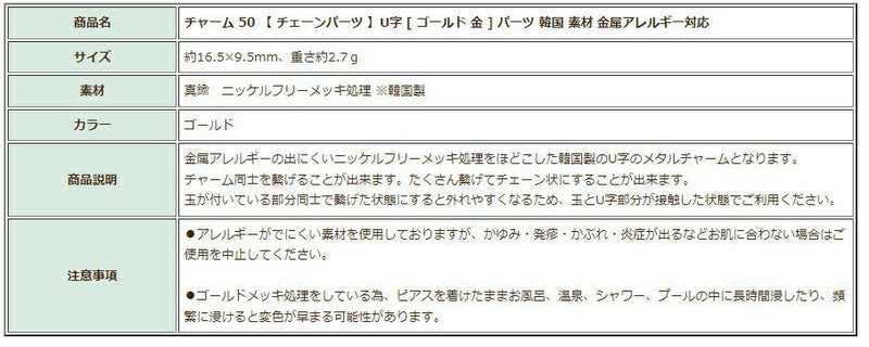商品名 チャーム 50 【 チェーンパーツ 】U字 [ ゴールド 金 ] パーツ 韓国 素材 金属アレルギー対応