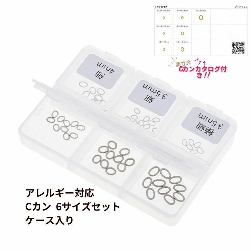 [ 各約10個 ] Cカン * サンプルセット * 6サイズ セット [ 銀 シルバー ] ケース入り カタログ付き サージカルステンレス パーツ 金属アレルギー対応 CA-01