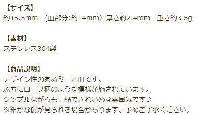 約16.5mm (皿部分:約14mm)厚さ約2.4mm 重さ約3.5g