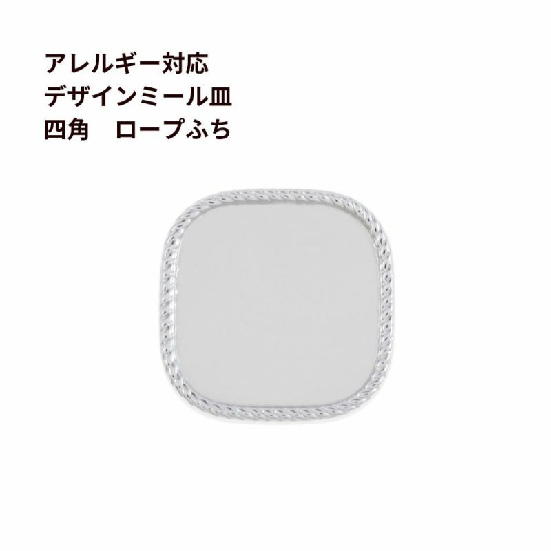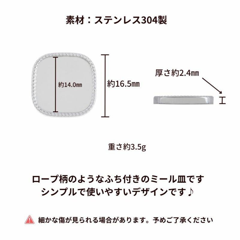 [4個] 304 デザインミール皿 M3001 四角 ロープふち [ 銀 シルバー ] ステンレス パーツ 貼付 土台 枠 大人 シンプル 金属アレルギー対応 M1-03