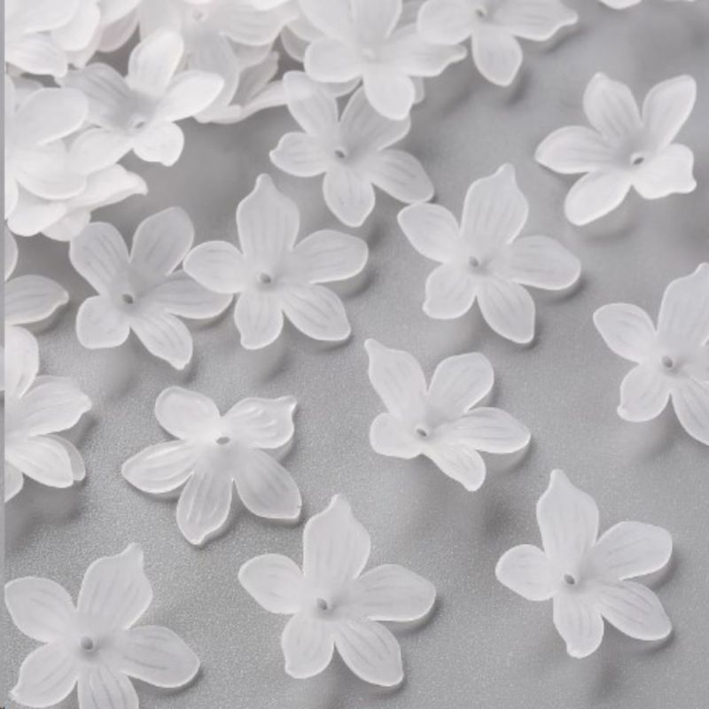[10個] お花 ビーズ * 大 * [ ホワイト ] フラワー アクリル チャーム 素材 アクセサリーパーツ 0-03