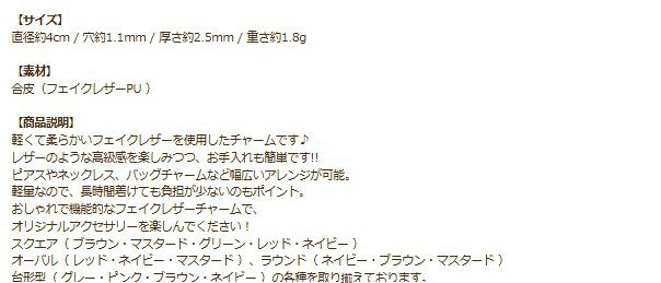 軽くて柔らかいフェイクレザーを使用したチャームです♪