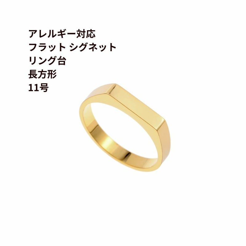 [5個]サージカルステンレス フラット シグネット リング台 長方形 * 約11号サイズ * [ ゴールド 金 ] 台座 パーツ 金属アレルギー対応 O-02