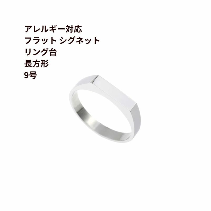 [1個]サージカルステンレス フラット シグネット リング台 長方形 * 約9号サイズ * [ 銀 シルバー ] 台座 パーツ 金属アレルギー対応 O-02