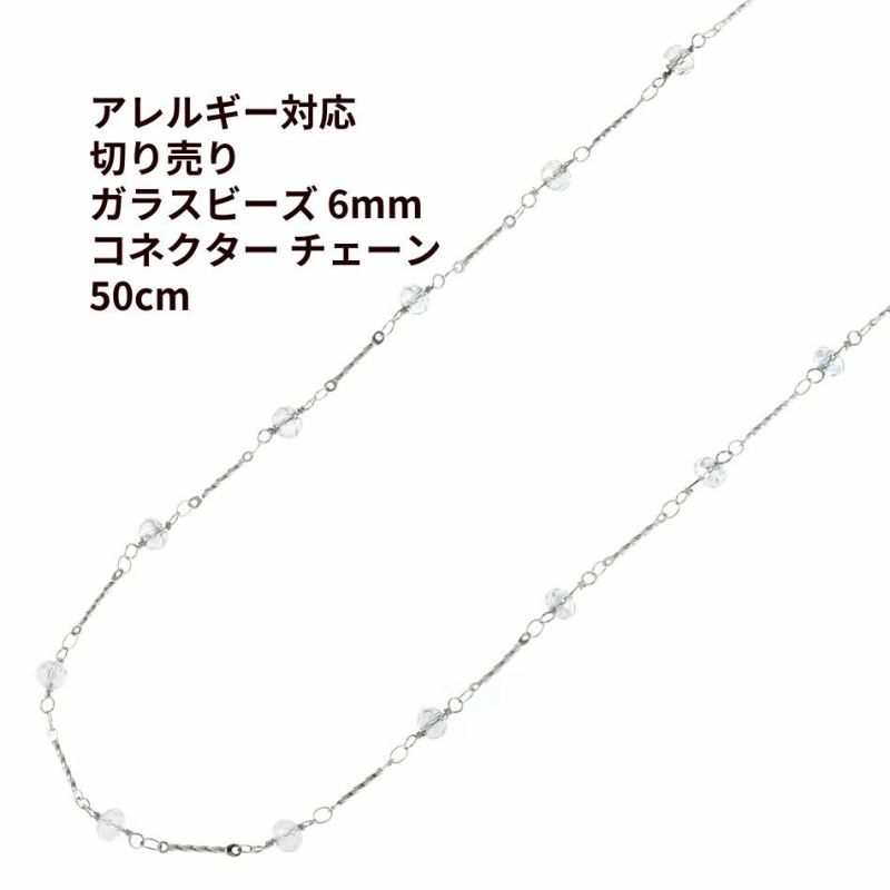 [50cm×1本]切り売り ステンレス 304 ガラスビーズ * 6mm * コネクターチェーン [ 銀 シルバー ] チェーンのみ パーツ 金属アレルギー対応 C2-02