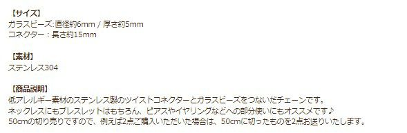 低アレルギー素材のステンレス製のツイストコネクターとガラスビーズをつないだチェーンです。