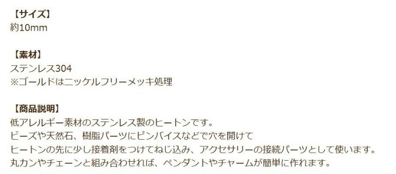 [20個] ヒートン 《 10mm 》 [ 銀 シルバー ] ステンレス キャップ アクセサリー パーツ 金具 素材 金属アレルギー対応 CA-06
