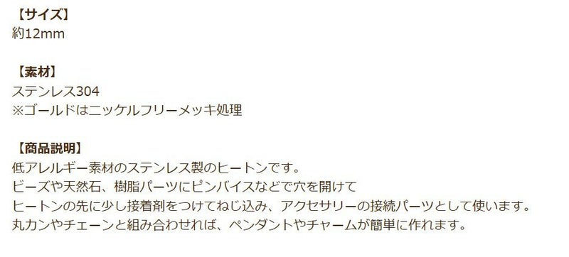 [10個] ヒートン 《 12mm 》 [ 銀 シルバー ] ステンレス キャップ アクセサリー パーツ 金具 素材 金属アレルギー対応 CA-06