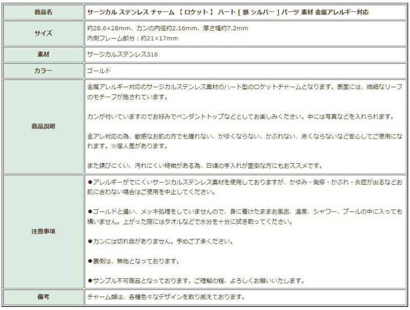 金アレ 316 チャーム ニッケルフリー ハート ロケット 敏感肌