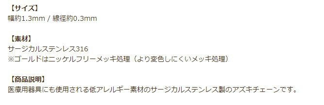 医療用器具にも使用される低アレルギー素材のサージカルステンレス製のアズキチェーンです。