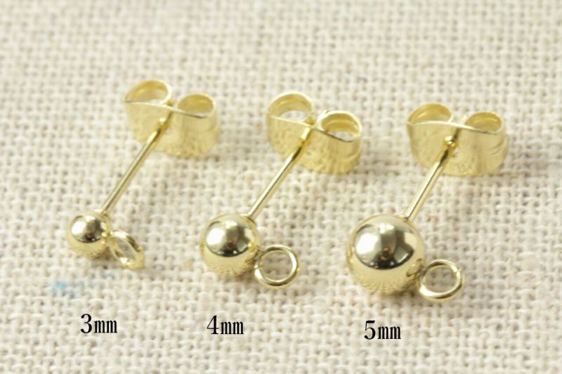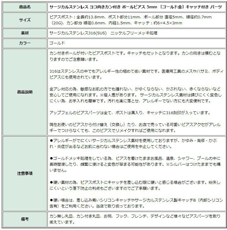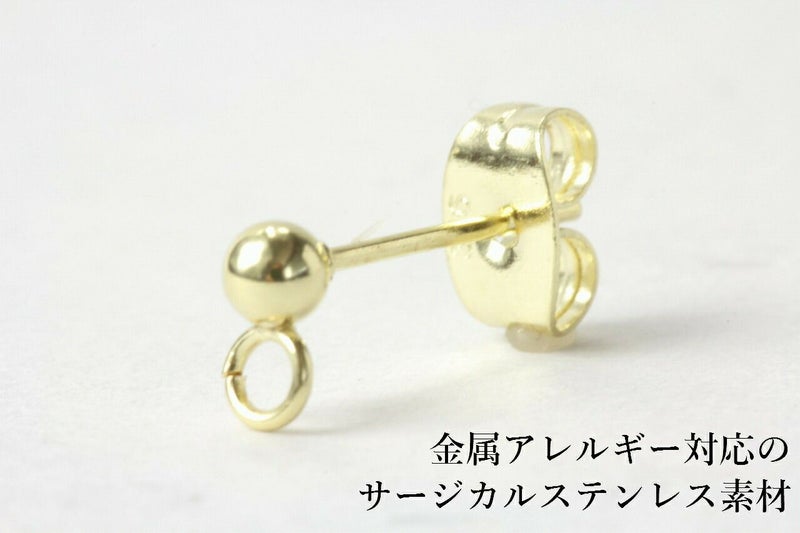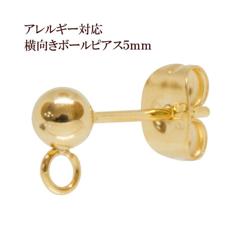 サージカルステンレス ヨコ向きカン付き ボールピアス 5mm [ゴールド金]キャッチ付き パーツ |