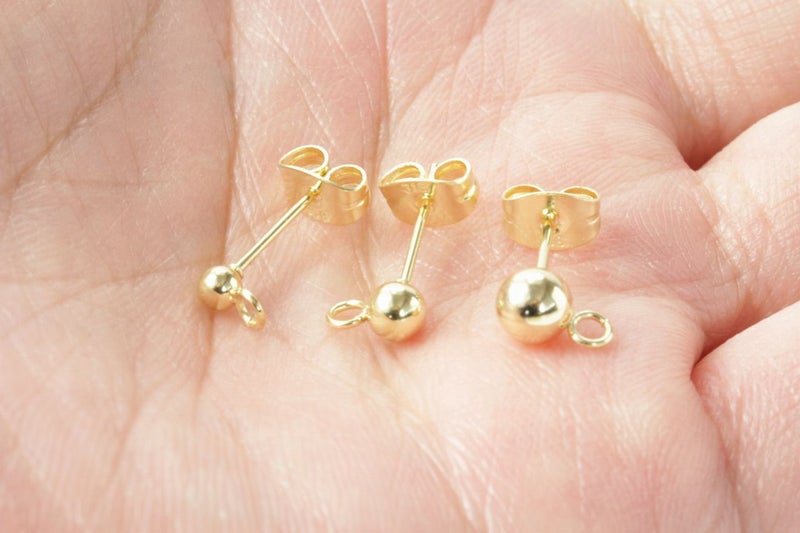 * 送料込み * [10個] ヨコ向きカン付き ボールピアス 5mm[ ゴールド 金 ]サージカルステンレス キャッチ付き アクセサリー パーツ 金具 金アレ