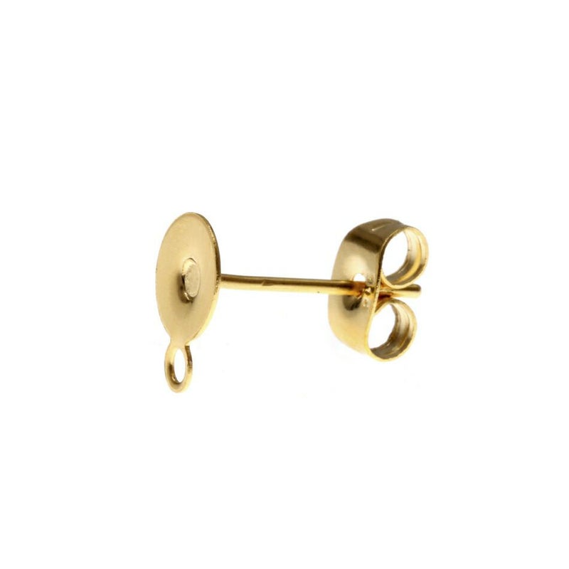 * 送料込み * [20個] カン付き丸皿6mm ピアス [ ゴールド 金 ] サージカルステンレス キャッチ付き パーツ 金アレ P1-02