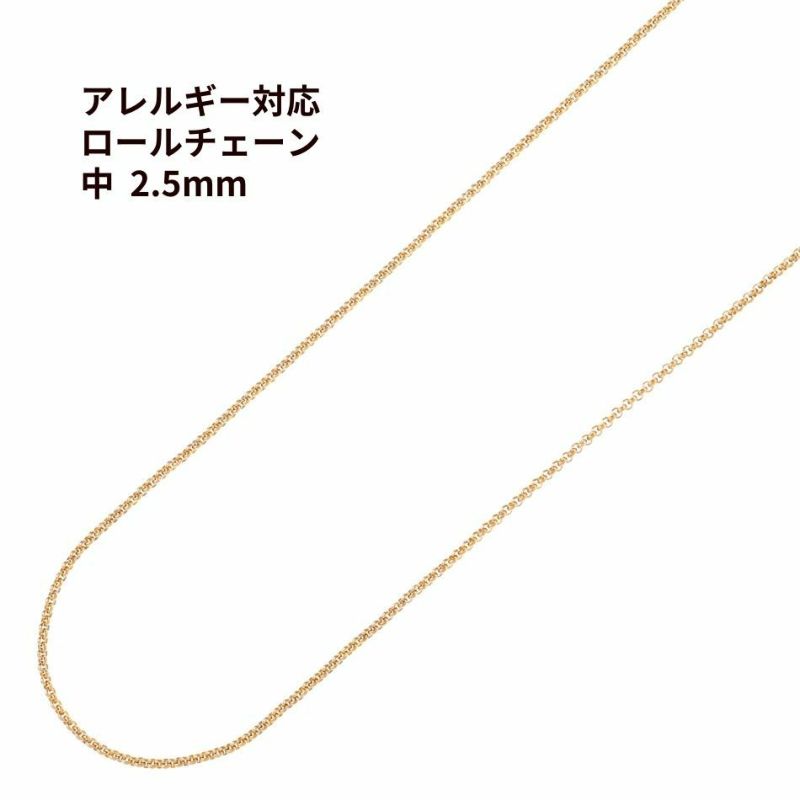* 送料込み * ロール チェーン 甲丸チェーン * 中 2.5mm * [ ゴールド 金 ] サージカルステンレス ロロチェーン パーツ 金属アレルギー対応 C1-01