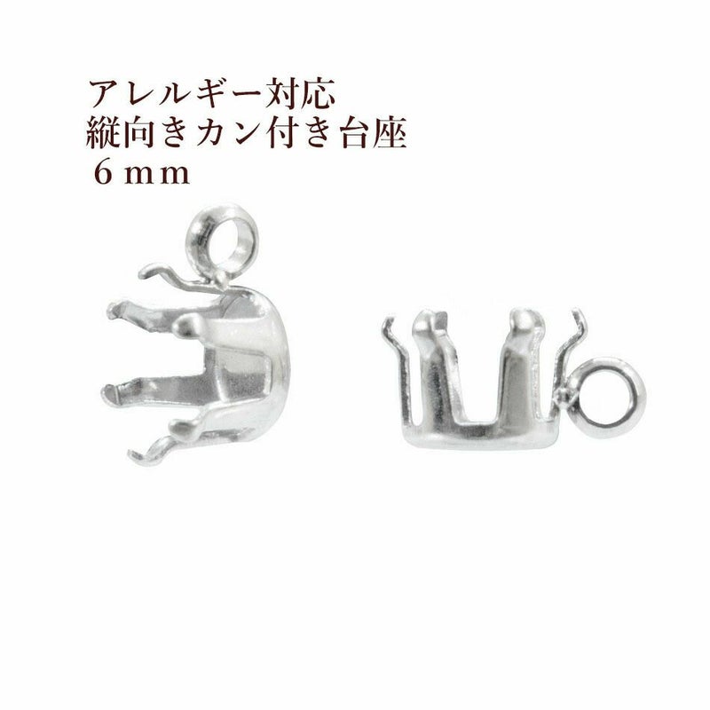 商品名 サージカルステンレス 縦向き カン付き 立て爪 台座 6mm[ 銀 シルバー ] パーツ 金アレ